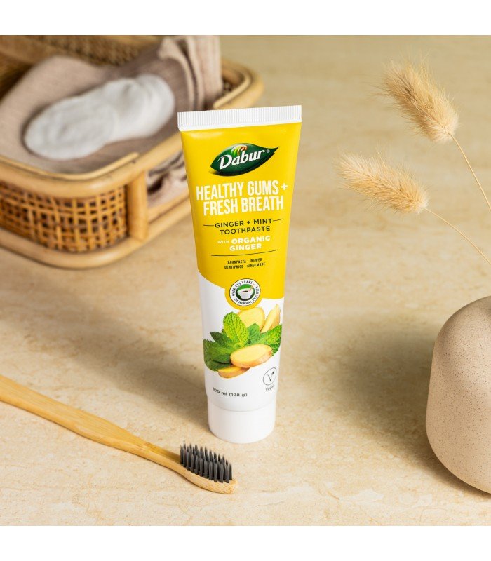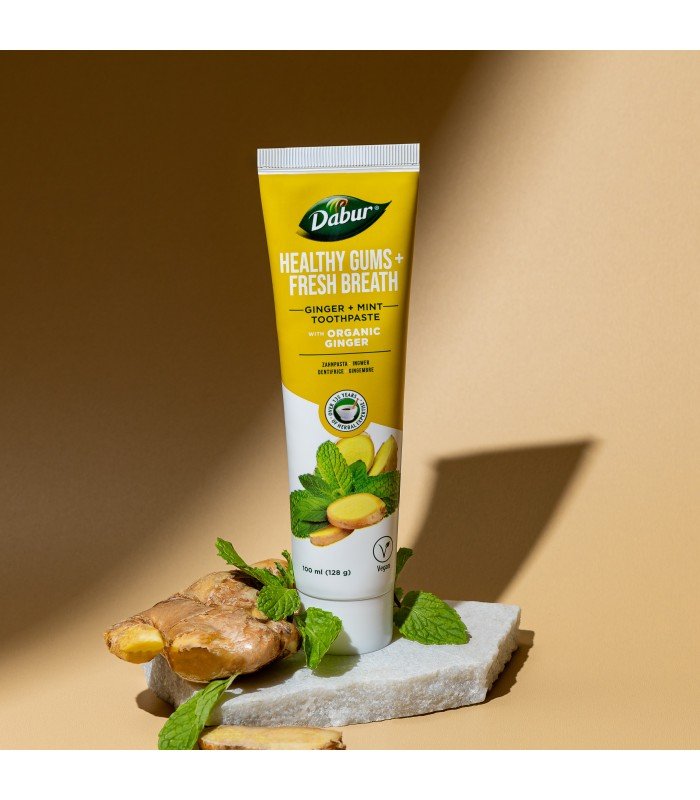 Dabur Ginger Mint dantų pasta – natūraliu gamtos ingredientų deriniu, kuris švelniai, bet veiksmingai rūpinasi jūsų burnos sveikata.
